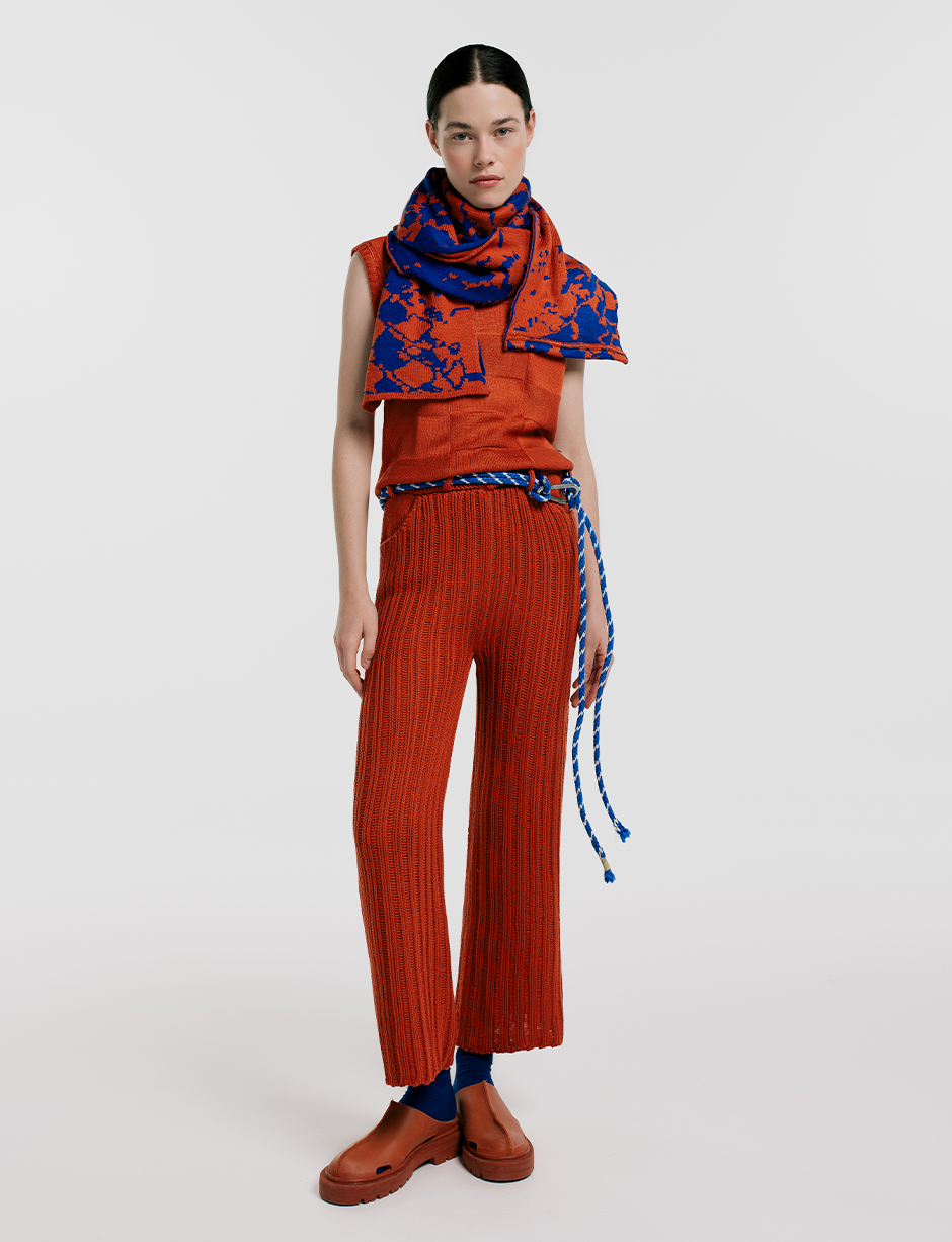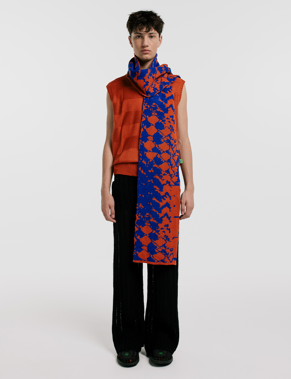 Bufanda tejida en Hilo Hipoalergénico con print SOGA de doble faz. Larga y versátil para estilizar múltiples looks. Tejida de punto, terminada y bordada a mano. Hecho en Sogamoso, Boyacá, Colombia.