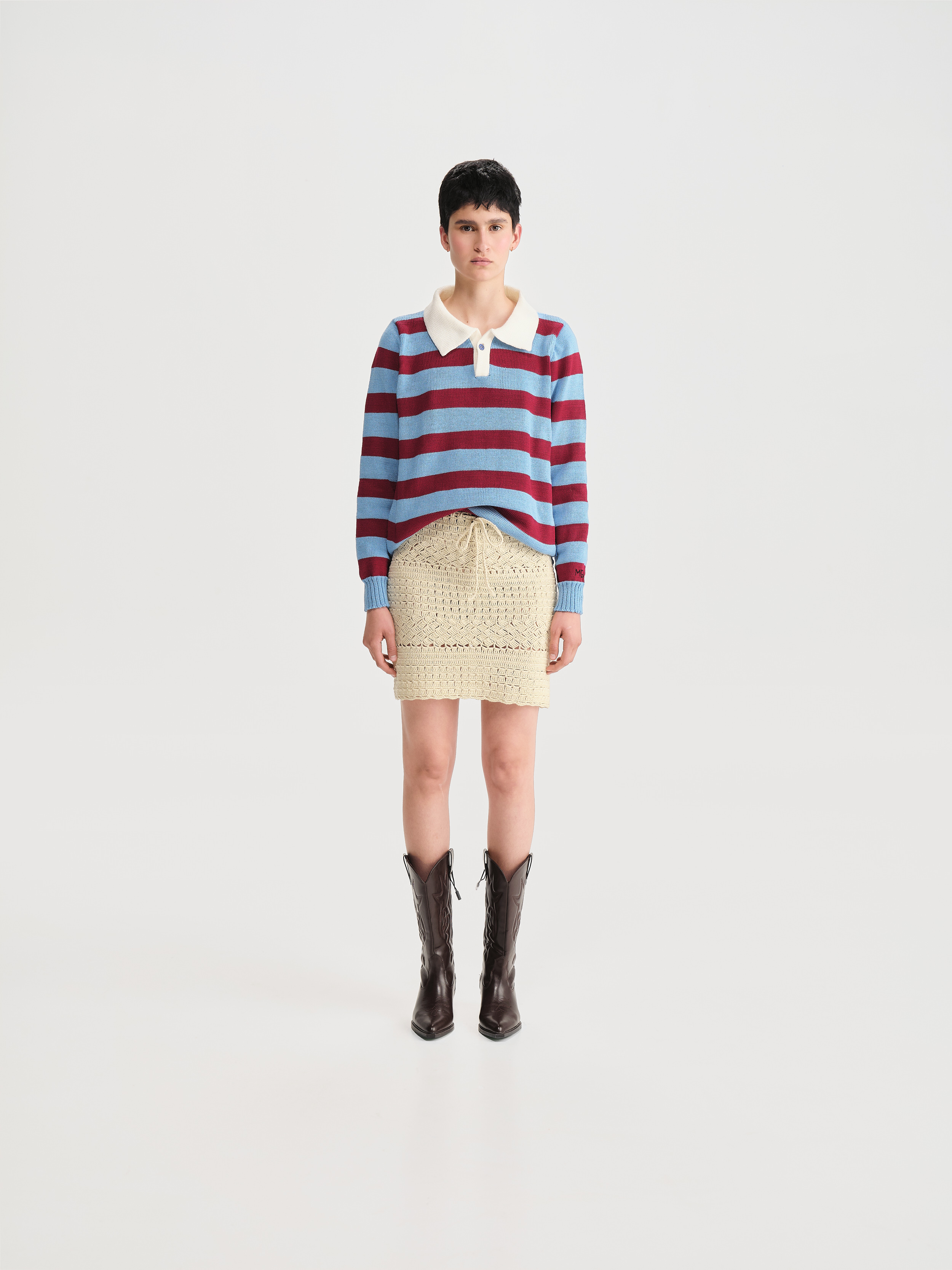 Nacida en nuestro viaje a Sogamoso, esta prenda hace parte de Tiempo Compartido, una colección creada para capturar esos instantes que se sienten eternos: las risas en carretera, la complicidad de familiares y amigos, y la serenidad profunda de volver al origen.