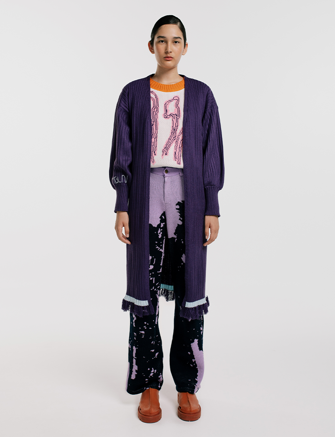 Maxicardigan tejido en Hilo Hipoalergénico con flecos . Detalle de flecos en el bajo. Fit oversized ideal para climas fríos. Tejido de punto, terminado y bordado a mano. Hecho artesanalmente en Sogamoso, Boyacá. Disponibilidad en todas las tallas.