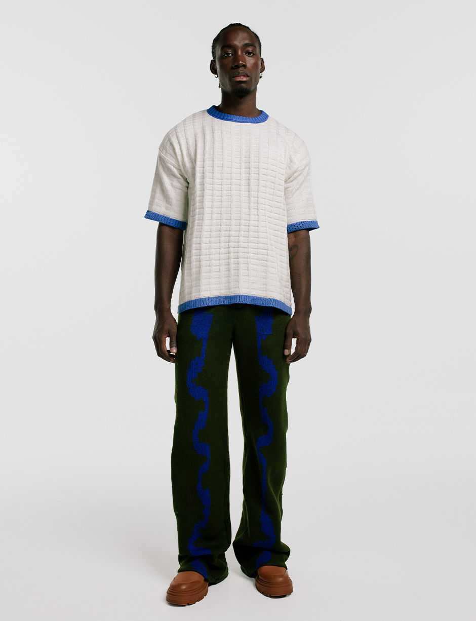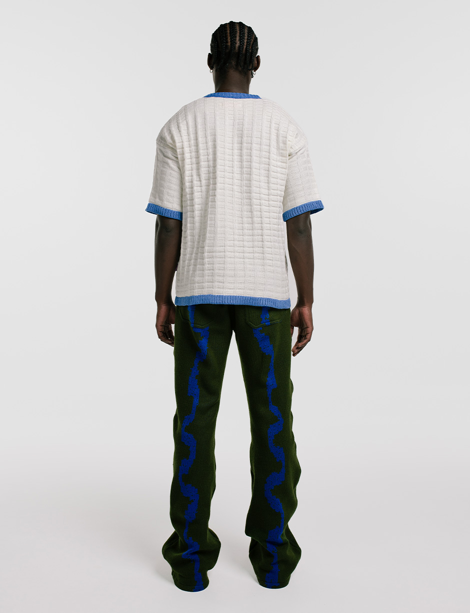 Pantalón tejido en Hilo Hipoalergénico con ilustración de serpentinas multicolor. Fit recto con cintura elástica. Tejido de punto, terminado y bordado a mano. Hecho en Sogamoso, Boyacá, Colombia.